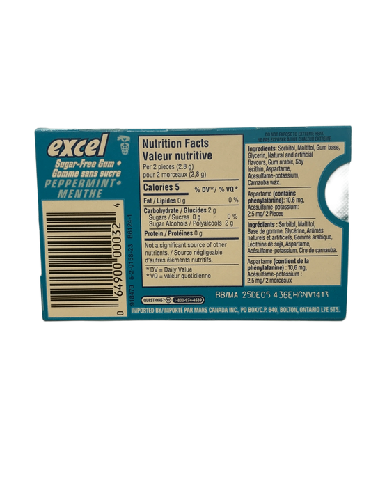 Excel Peppermint Gum 12 Pieces - Canadian Edition